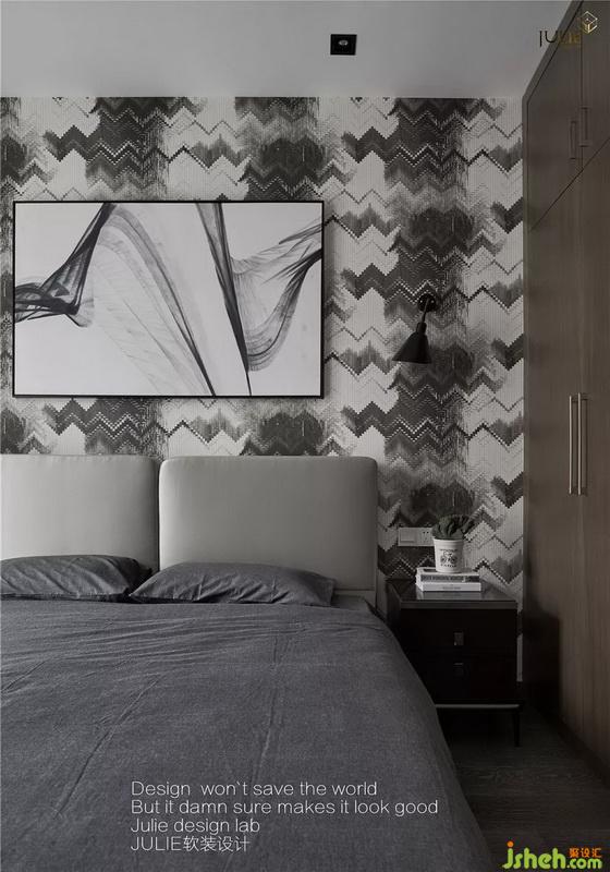 個(gè)性感十足的裝飾壁紙,豐富了整個(gè)空間的層次感。室內(nèi)設(shè)計(jì)師將黑白簡(jiǎn)約的裝飾掛畫反倒為空間增添了柔和溫馨的感覺。很大程度的緩和了視覺沖擊。在有限的裝飾中,斗柜造型顏色都很好的為空間增加了穩(wěn)重感,幾盆綠植注入自然活力。
