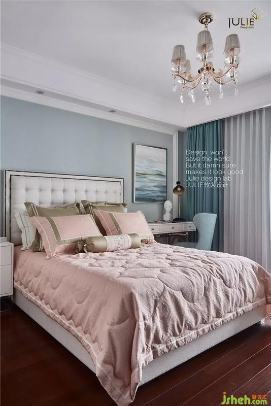 設(shè)計公司用小清新的淡水藍(lán)搭配浪漫甜美的少女粉。溫和且溫馨的臥室氛圍,讓人感受到了無法抗拒的公主般的高貴。整體營造出青春活力的專屬夢境。