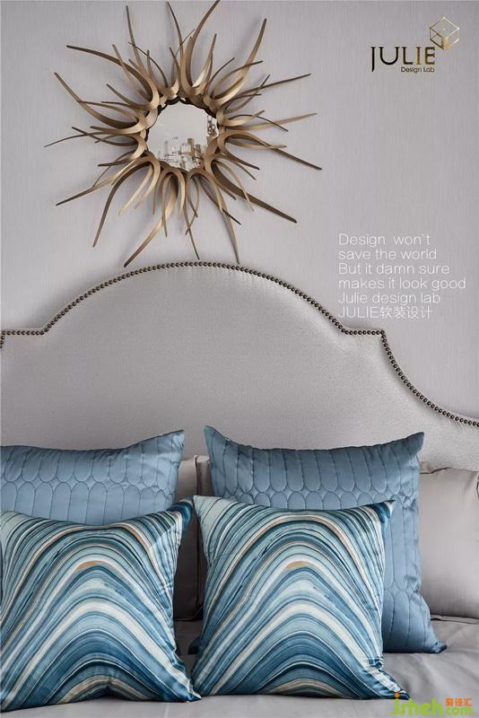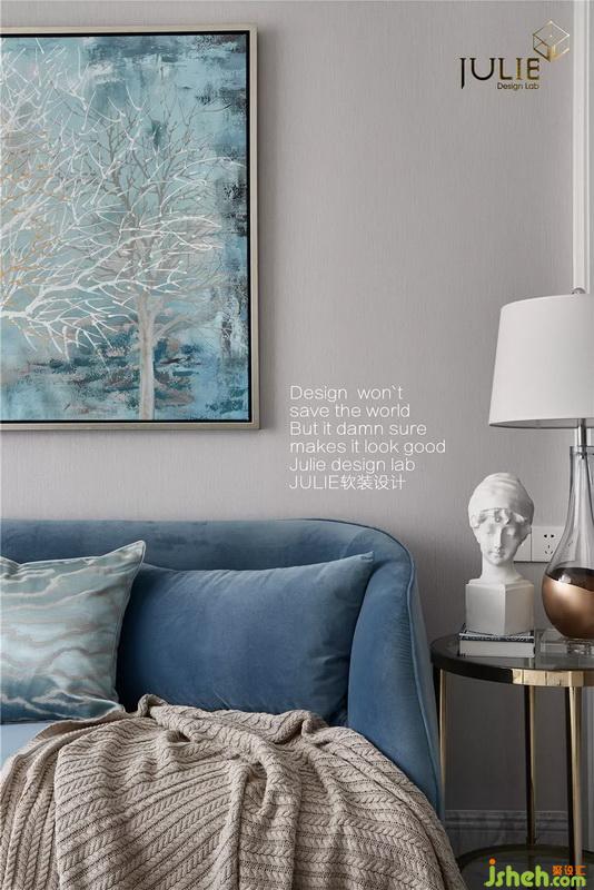 讓浪漫的氣息透過每一寸目光中。主臥室結(jié)合整體設(shè)計(jì),室內(nèi)設(shè)計(jì)師在簡(jiǎn)約時(shí)尚的基礎(chǔ)上,加以藍(lán)色與金色的相互點(diǎn)綴,更為空間帶來微妙的輕奢風(fēng)采。