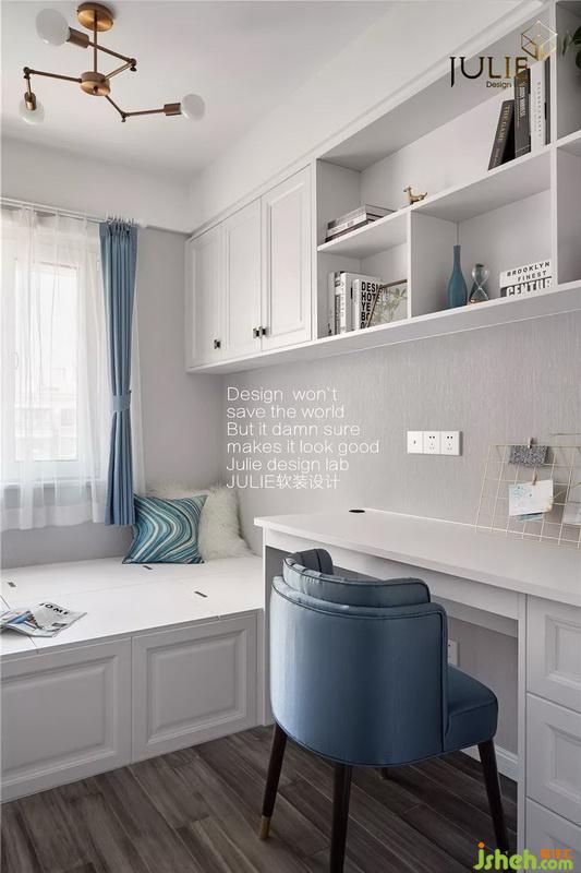 麻雀雖小,五臟俱全。室內(nèi)設(shè)計(jì)師將榻榻米與書桌的結(jié)合,不僅滿足了儲(chǔ)物辦公的功能,還為小居所增加了休息平臺(tái)。