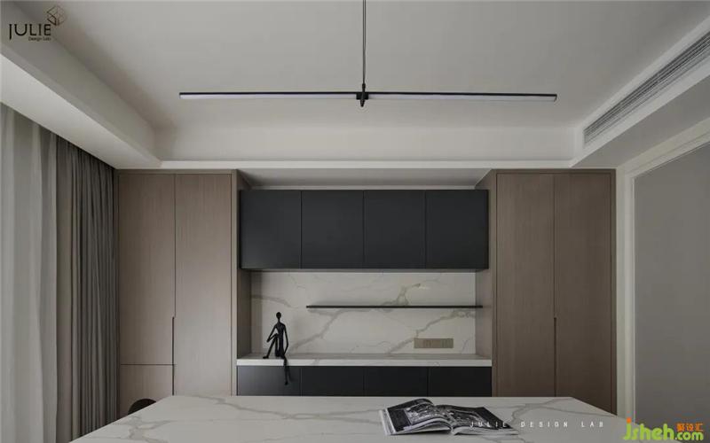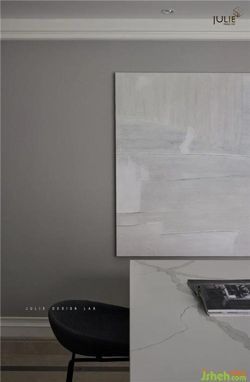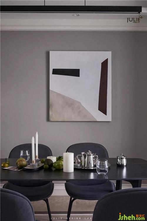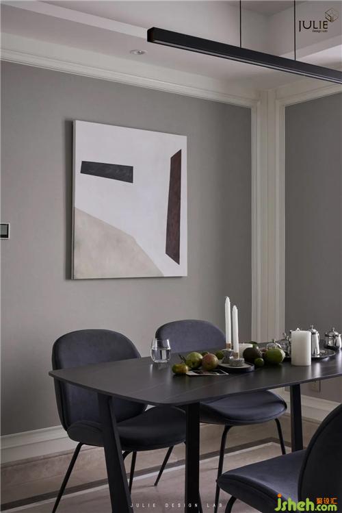 餐廳的色調(diào)也采用灰色系,點(diǎn)綴藍(lán)色在其中,簡約的同時(shí)又不失大方,讓整個(gè)餐廳看起來干凈整潔,而且富有層次感。
