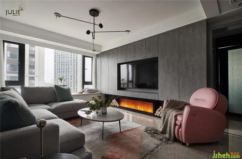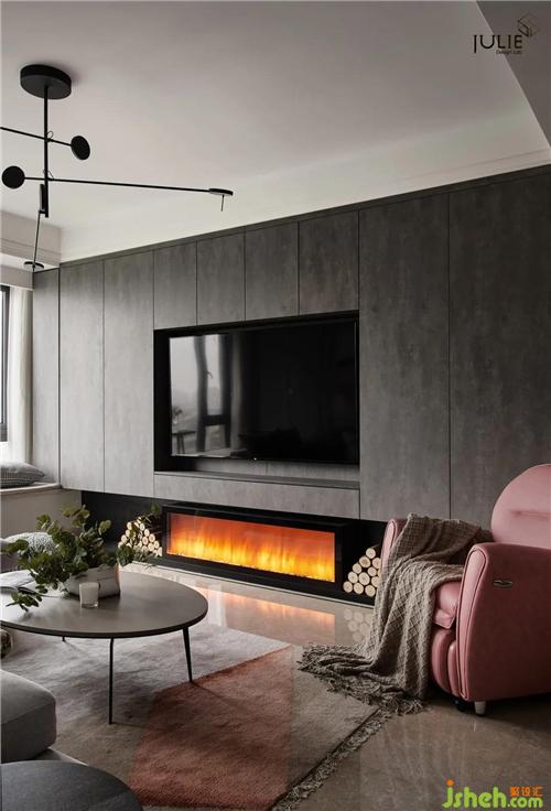 電視柜懸挑處的壁爐設(shè)計(jì)
