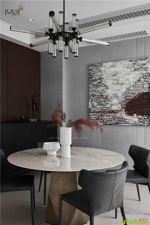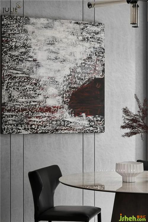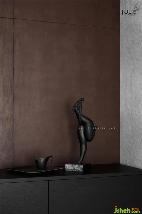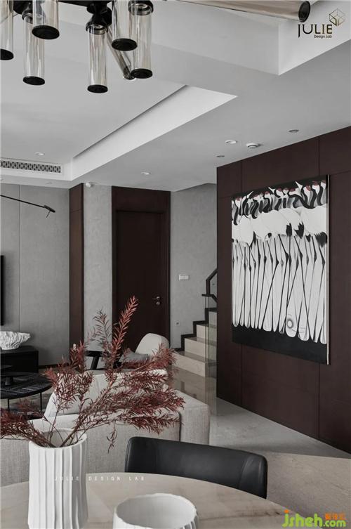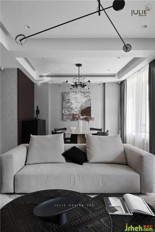 客廳整個空間的基調(diào)以典雅灰與白茶色為主。白茶色,在印象之中是溫暖而含蓄的,這樣的色彩與黑色進行碰撞,于空間中娓娓道來,單單在感官上就能引起所有的注意力。