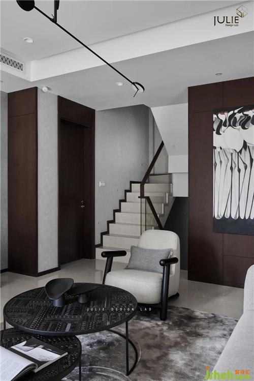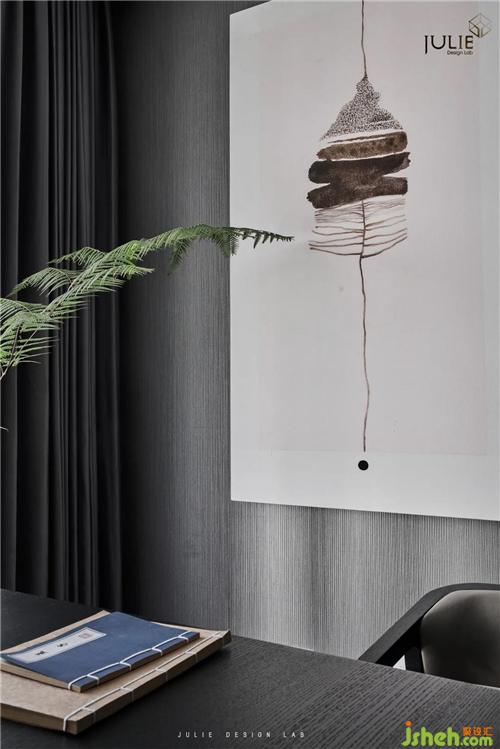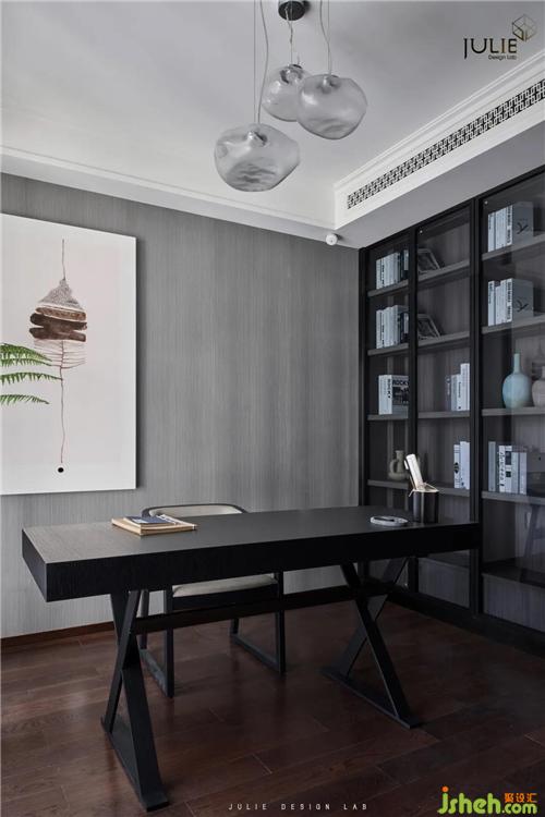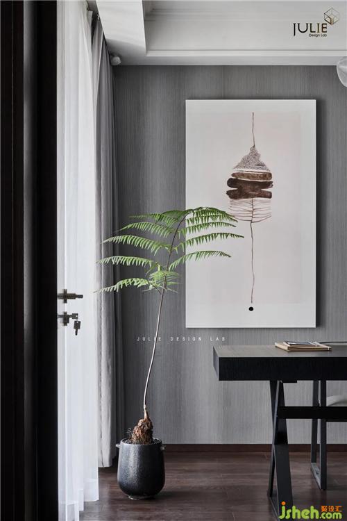 淡雅灰調(diào),暖光鋪韻,塵世繁華間隱匿著的寧靜祥和由畫及室。不取繁飾,別墅裝飾空間布局和陳設都極盡簡約,一桌、一椅、一方書架,只取綠植為麗景,誠如《書齋說》所言:書齋宜明朗、清凈,不可太寬敞。