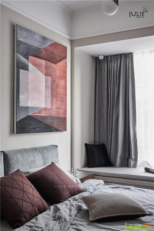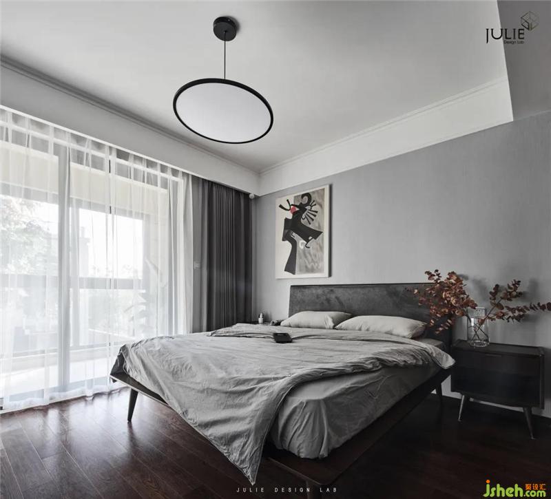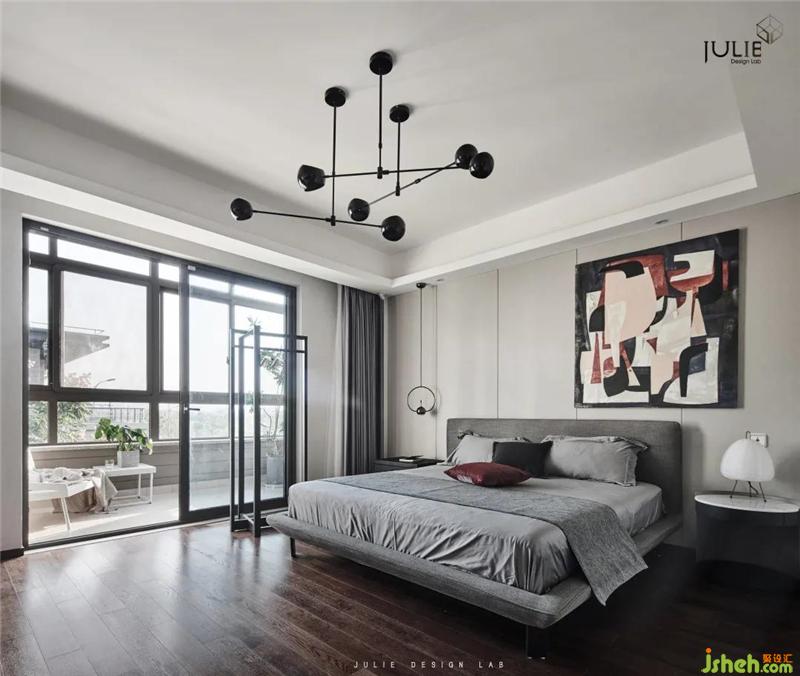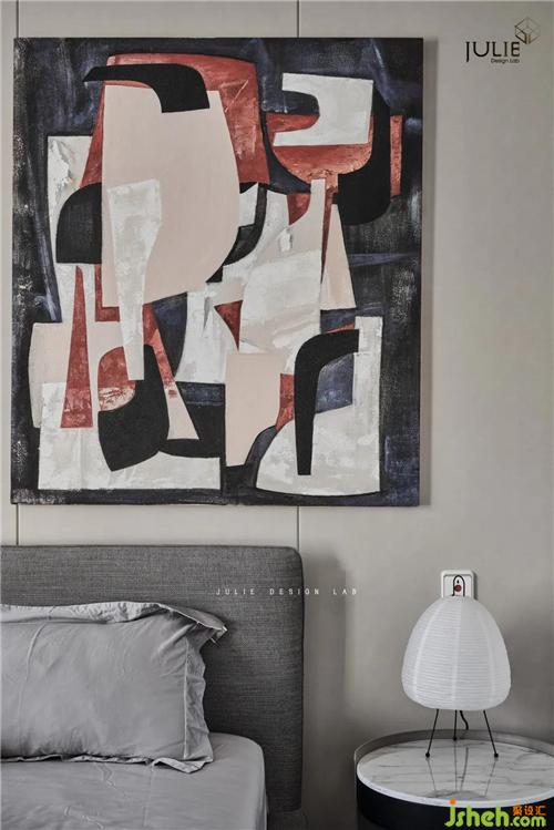裝飾小品不多且簡(jiǎn)凈,造型簡(jiǎn)約的臺(tái)燈與吊燈,幾何拼色的裝飾畫以及色彩點(diǎn)綴的床品,便足以架構(gòu)起居住者的生活日常。