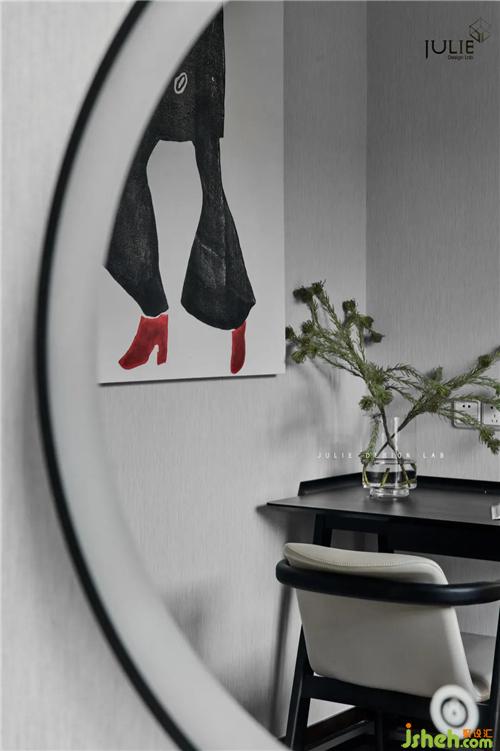 胡桃木的電視柜與色彩跳脫的裝飾畫相互襯映,柔與剛、動(dòng)與靜之間賦予空間靈動(dòng)的生命力,提煉寧靜與安逸的環(huán)境和諧之美。