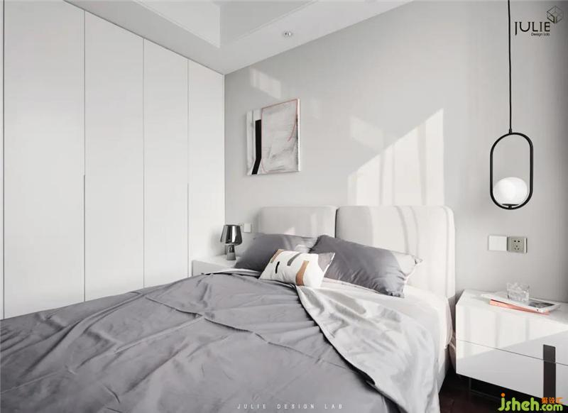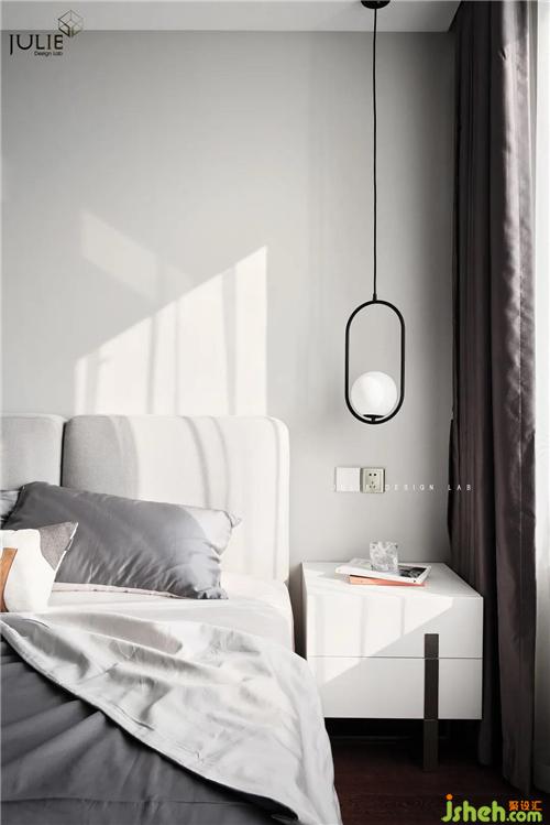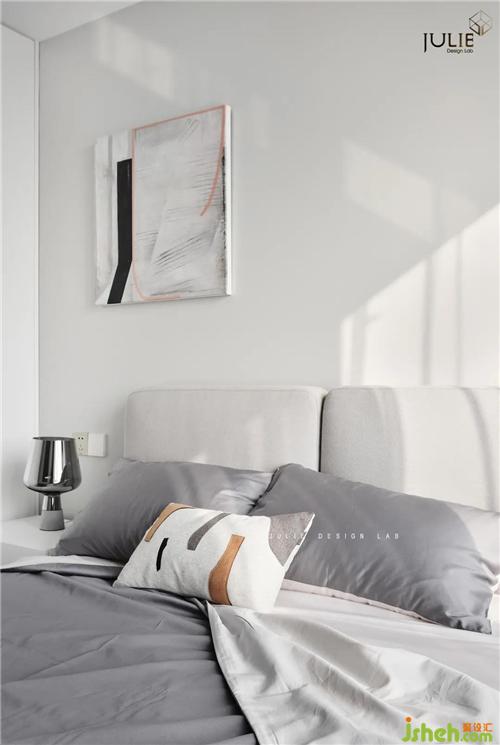 The soul of passion and freedom is eager to live in the peaceful harbor at night. The tonality of the second bedroom is bright and delicate. White and gray make people comfortable and warm in the sunlight, creating a kind of indoor and outdoor life balance.