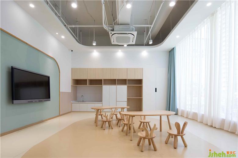 兒童空間設(shè)計教室保留空間原頂,不做吊頂,最大限度保證空間高度,減少成本,也不會產(chǎn)生空間的壓抑感。