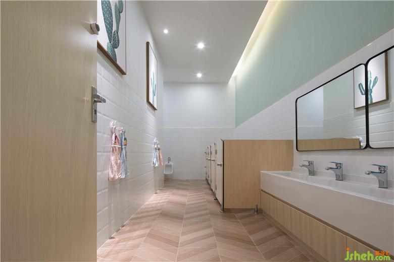 衛(wèi)生間將盥洗區(qū)與便間分離,獨立的小隔間,保護(hù)著孩子們的隱私。洗手池下方做收納柜體既能很好地隱藏水路管道,也能作為儲物空間,一舉兩得!