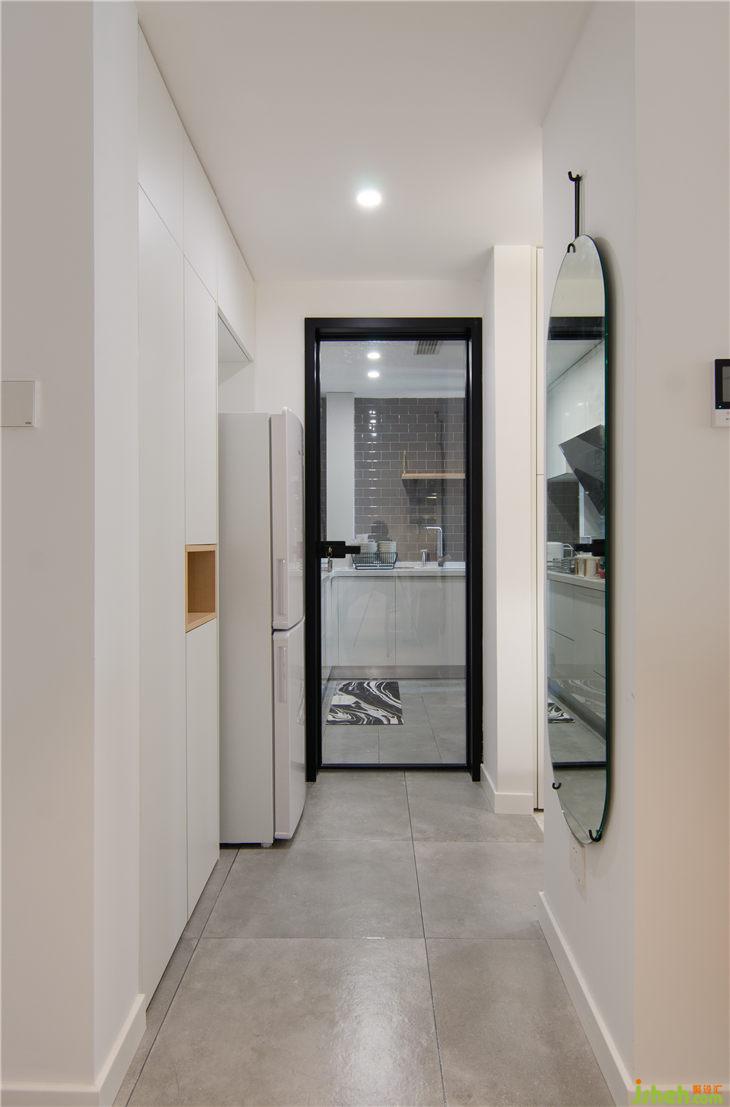1.將原有廚房的一部分面積分離出來(lái),作為入戶(hù)衣帽區(qū),承擔(dān)了玄關(guān)的收納與換鞋功能,并預(yù)留了冰箱的位置。