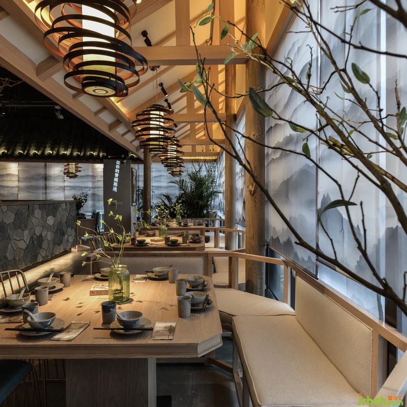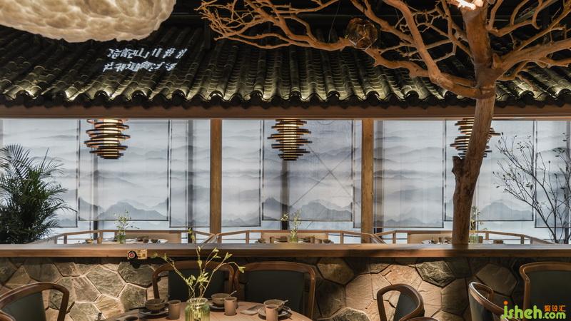 材料也基本選用中國傳統(tǒng)的木、石、小青瓦, 顏色則采用灰、白、木制本色,點(diǎn)綴了一抹青色。最初構(gòu)想整體用餐環(huán)境時(shí),我們想讓顧客很遠(yuǎn)就看到看到小橋、流水、綠樹幽幽的門頭,走近一看,透過我們室內(nèi)設(shè)計(jì)師設(shè)定的半開敞視線,若隱若現(xiàn)看到內(nèi)部錯(cuò)落的大小院子、老樹、白云等兒時(shí)熟悉的中國院子生活場景,這不僅僅是一場食憶之旅,更是一場身臨其境的感知。
