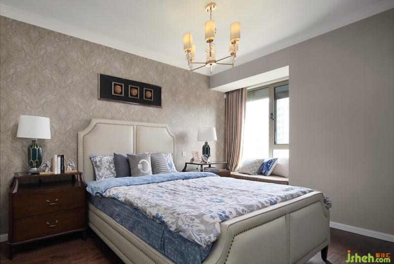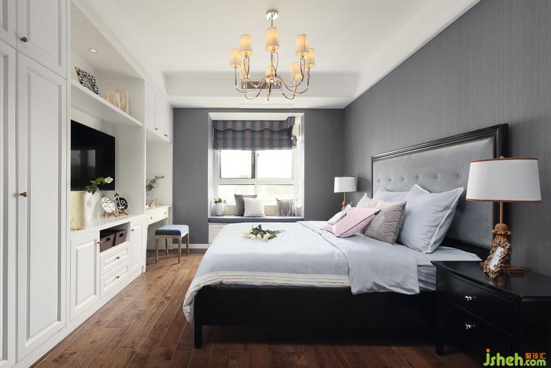 主臥室的飄窗不僅增加了收納功能,而且躺在上面看看書或者發(fā)發(fā)呆都非常愜意。電視柜與化妝臺都比較精致,化妝臺上放上小綠植,在自己的私密空間化妝心情也會舒暢。