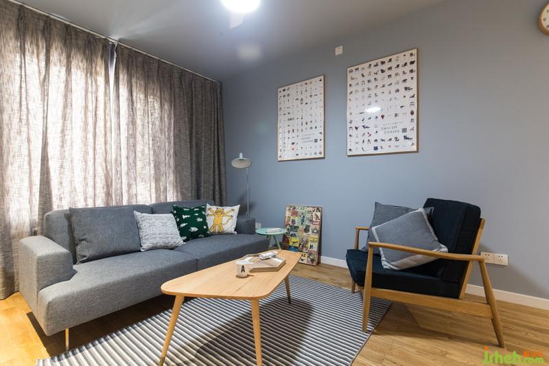 灰色布藝沙發(fā),原木色底座藏青布藝,加上原木茶幾,可以愜意的小憩和休閑。