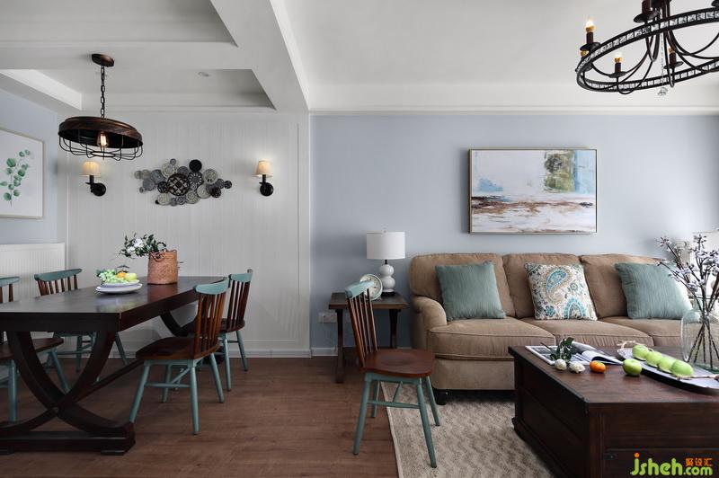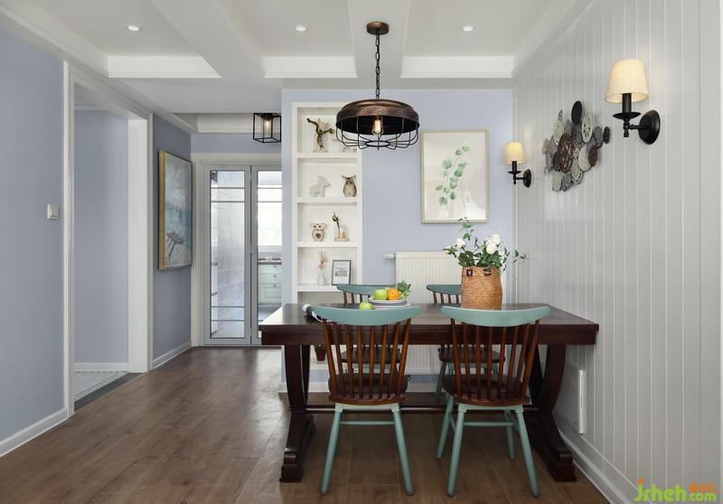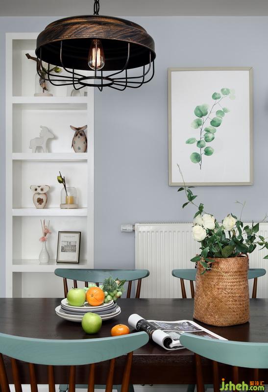 室內(nèi)設(shè)計(jì)師使用撞色的簡(jiǎn)美式桌椅,內(nèi)嵌的柜子,細(xì)節(jié)處展現(xiàn)了室內(nèi)設(shè)計(jì)師的小心思。