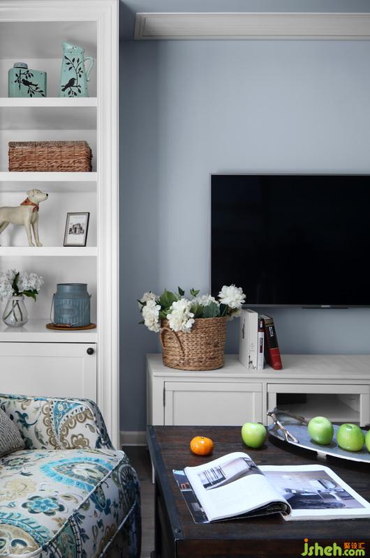 電視柜和裝飾柜很好的起到了收納的作用,裝飾柜的小物件恰巧豐富了這面墻。