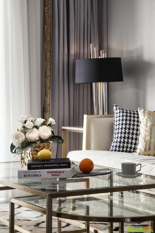 茶幾是美克美家的款式,造型比較特別,由一個(gè)長(zhǎng)方形和兩個(gè)半橢圓形組合而成,透過玻璃面板,豐富的層次感躍然于眼前。