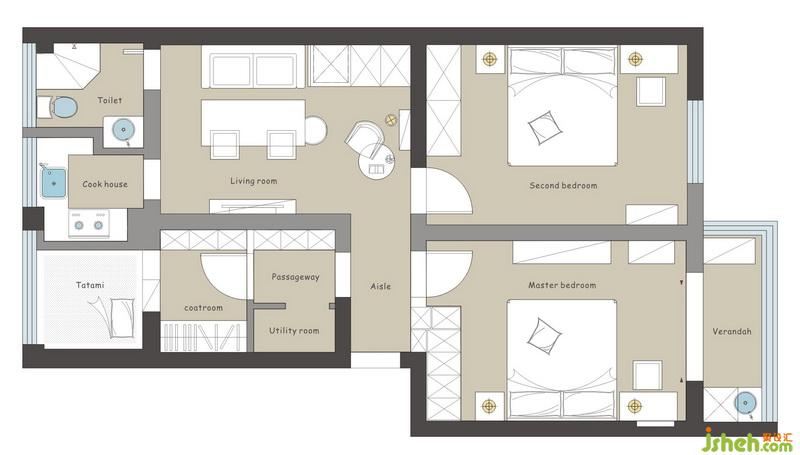 這是一套三室一廳一廚一衛(wèi)的房型,在結(jié)構(gòu)上我們主要做了4塊區(qū)域的調(diào)整: