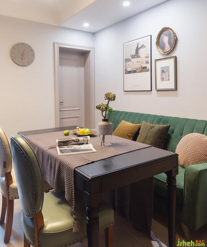 本案是一套美式輕奢復(fù)古風(fēng),通過(guò)對(duì)這套老房子的改造,家中色彩與家具配飾的完美融合,使得這個(gè)家充滿了溫馨感。墨綠色的布藝沙發(fā),純色的絲絨抱枕,灰色的墻面,深色調(diào)與素雅的交融,使得空間充滿了時(shí)尚感。歐式的復(fù)古掛畫,展現(xiàn)了精致生活的獨(dú)特藝術(shù)。