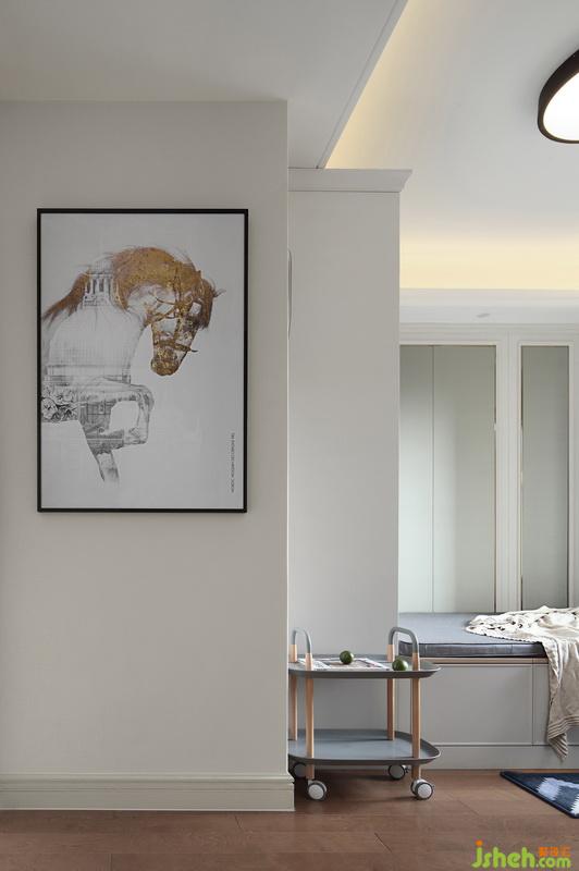 進(jìn)入多功能室,一副馬到成功的掛畫映入眼簾,筑造了房間內(nèi)的氣質(zhì),為生活呈現(xiàn)出美好的狀態(tài)。淡藍(lán)色的置物架帶有推車功能,不但顏值高,實(shí)用性也很強(qiáng),又能給小朋友增添一處玩樂的意趣。