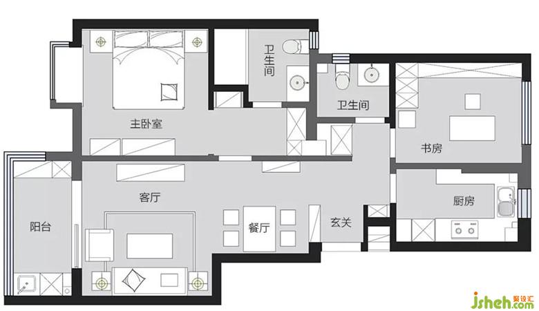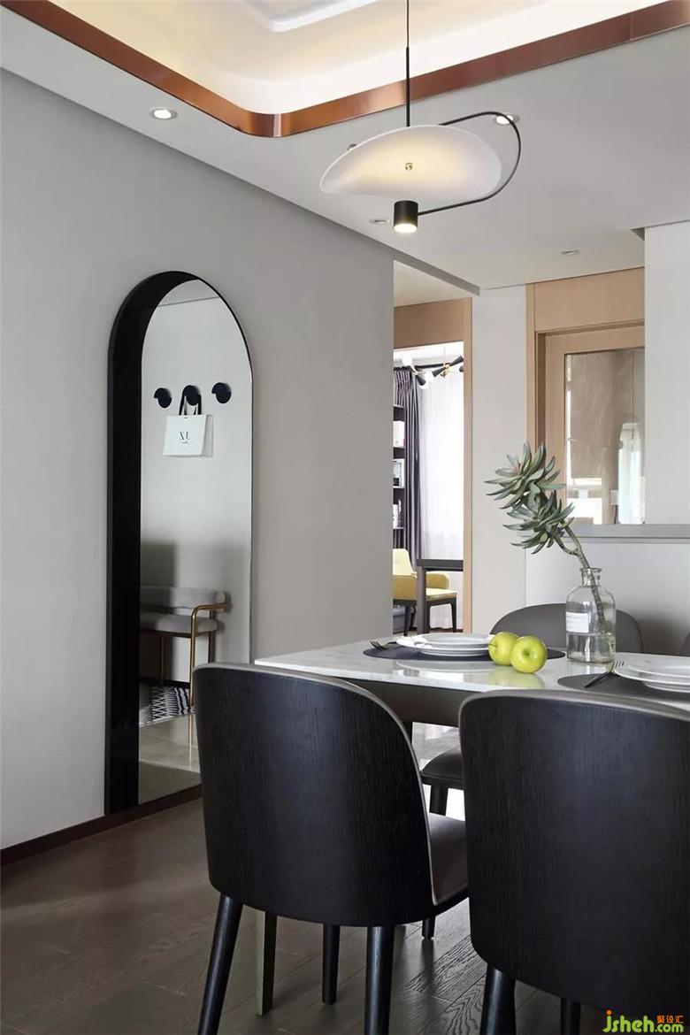 黑白金色組成的吊燈,為小巧的餐廳平添精致摩登感。