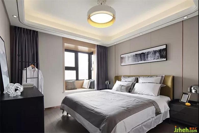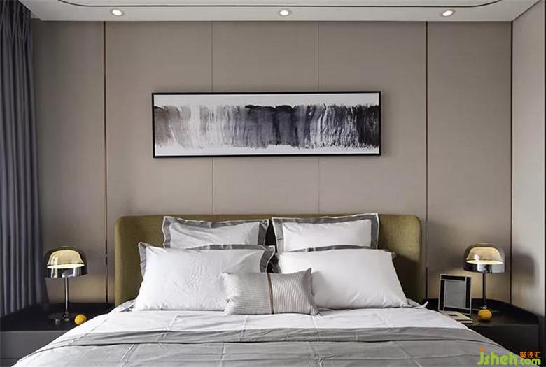 臥室延續(xù)黑白灰的簡約基調(diào),提供屋主相對平靜舒適的睡眠環(huán)境,另搭配橄欖綠的布藝床頭,在提升質(zhì)感的同時(shí),也能避免整體氛圍陷入無趣感。此外,飄窗也運(yùn)用了古銅金色,再放上幾個(gè)格紋抱枕,顯得優(yōu)雅低奢。