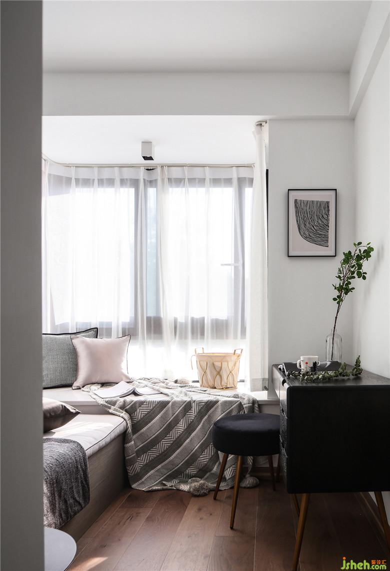 墻角裝修公司選購了一套梳妝臺,表面是翻蓋式的鏡子,內(nèi)嵌儲物格,合上時(shí)又可以作為書桌使用,裝修公司搭配天鵝絨的圓凳,柔軟舒適。窗前擁有一個大的飄窗,無論坐在桌邊看書還是靠在飄窗上都可隨自己的心意,悠閑而自在。