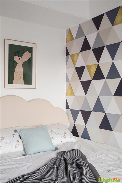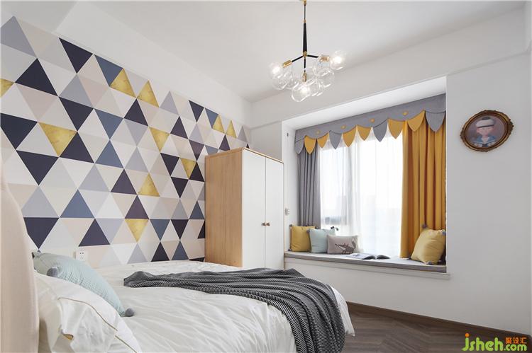 我們?cè)谝幻鎵ι隙ㄖ屏硕嗖实谋诩?,三角?豐富的色彩,可以給孩子帶來更多遐想的空間。房間內(nèi)購(gòu)置了一款兩門衣柜,采用了弧形元素,圓潤(rùn)可愛,增加了屋內(nèi)的收納空間。窗簾采用灰色與黃色的搭配,瞬間提亮了空間,增強(qiáng)了視覺感;樹葉狀的造型也增加了屋內(nèi)的趣味性。
