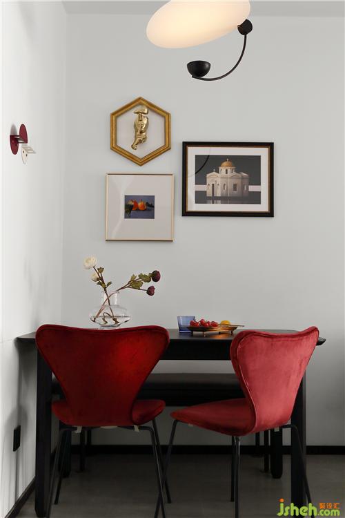 酒紅色的餐椅,集簡約與美學于一身,帶來了視覺上的沖擊感,演繹恰到好處的摩登時尚。