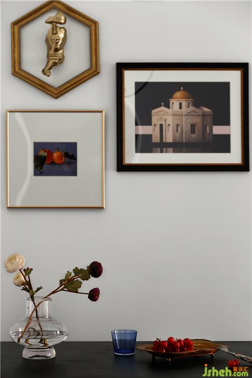 墻面搭配上一組復古裝飾畫,立顯出小家的溫馨雅致,濃濃的溫情,家的溫暖,營造出一份休閑式的浪漫。餐桌上的優(yōu)雅花瓶、鮮花、藍色的水杯、金色的水果盤,也為我們的生活帶來了滿滿的儀式感。