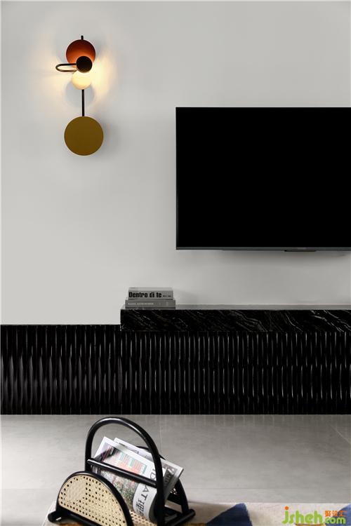 紅、黑、灰、黃組合而成的星球壁燈,配以暖色調(diào)光源,既前衛(wèi)又精致,掛于白色墻面上,則更添品質(zhì)范。