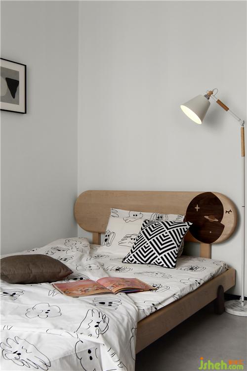 兒童床選購(gòu)了一款帶有圓角床頭的實(shí)木床,保證環(huán)保性的同時(shí)也可防止孩子的磕碰,帶有卡通圖案,床腳也是輪子狀的,為兒童空間帶來(lái)了趣味性。木藝、金屬與大理石組合的落地?zé)?,?jiǎn)約的設(shè)計(jì)給人一種寧?kù)o平和的感覺(jué),營(yíng)造的不僅是光照的氛圍,更能讓人感受到與空間相呼應(yīng)所帶來(lái)的美感。