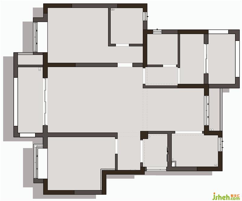 5. 次衛(wèi)的進(jìn)門向左平移,留出放置浴室柜的空間