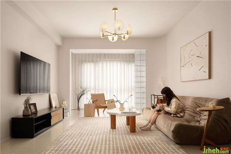 來到客廳,一組養(yǎng)眼的色彩瞬間映入眼簾,奶油的溫潤(rùn),南京室內(nèi)設(shè)計(jì)師搭配暖白色、奶咖、木質(zhì)家具,奠定了全屋風(fēng)格的基調(diào)。整體空間在簡(jiǎn)約的基礎(chǔ)上,透露出淡雅柔和的平衡,分分鐘柔軟又高級(jí)。