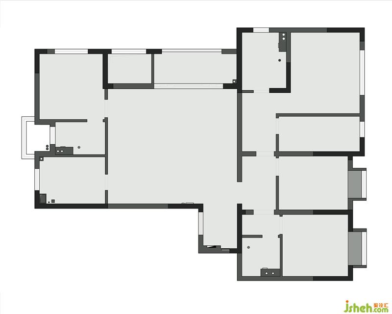 5.休閑室進門位置和洗衣房一側(cè)的墻體整體向客廳外拓,使其在一條動線上