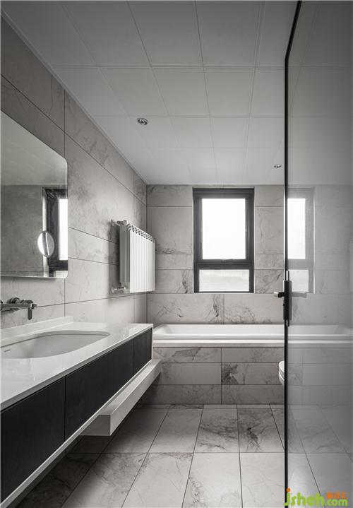 主衛(wèi)以淺灰色為基調(diào),體現(xiàn)出空間的干凈整潔,自帶漸變紋理的長條磚,起到畫龍點(diǎn)睛的視覺效果,整體營造出優(yōu)雅、舒適的感覺。內(nèi)置一個大浴缸,辛苦一天回到家泡個熱水澡,放空一切的感覺,何其舒服~