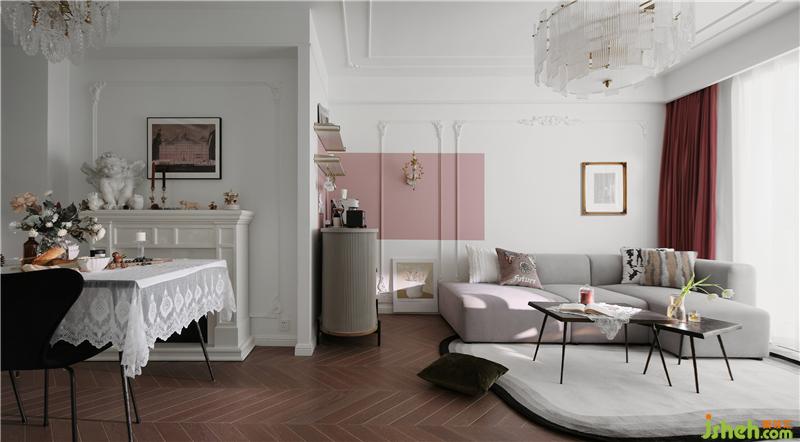 透過客廳,空間是以白色為主色調(diào),在視覺感知上,白色是比較柔和、干凈的色調(diào),南京室內(nèi)設計師搭配上粉色的撞色,帶來別具一格的溫柔與優(yōu)雅,使空間調(diào)性在和諧統(tǒng)一的基礎上更加具有層次感。