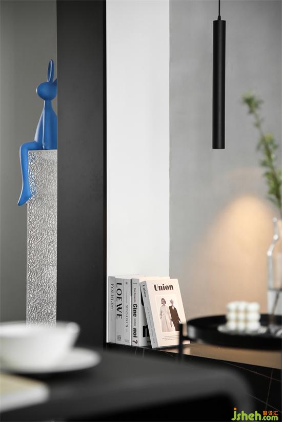 一盞長(zhǎng)筒吊線燈,利落、簡(jiǎn)潔的線條,純凈的黑色,細(xì)膩的質(zhì)感,南京裝修設(shè)計(jì)增添了空間的層次感,也在不經(jīng)意間隱約透現(xiàn)出美感與力度。