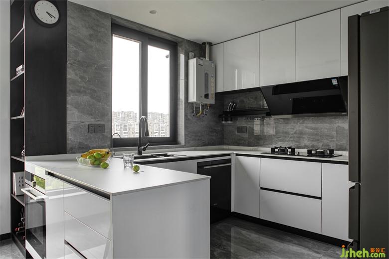 廚房設(shè)計(jì)了開放式,與餐廳相聯(lián)通,南京裝修設(shè)計(jì)整體通透敞亮,增大了空間的視覺感;白色櫥柜與咖灰色瓷磚的組合,寧?kù)o和舒緩的色調(diào)使得整體精致又柔和。與餐廳相接的櫥柜又可以作為島臺(tái)的使用,增加了家人間的互動(dòng)性,實(shí)用與顏值并存,為家居環(huán)境帶來更好的體驗(yàn)。