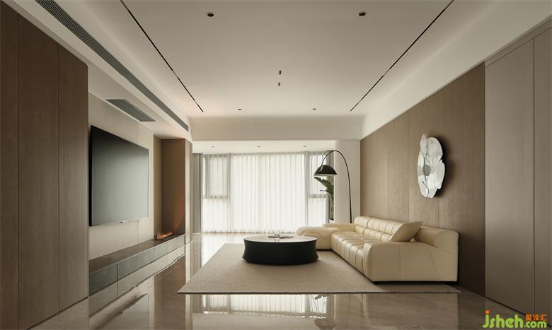 一面超大落地窗的開闊,收錄一年四季的光影流轉,滿足視覺尊享;以暖灰色+咖色為主調,呈露出本真樸實又不乏清雅的審美感受。