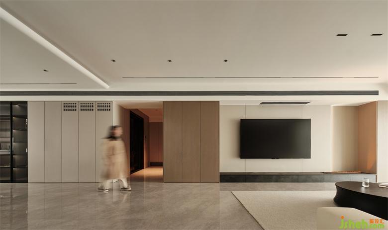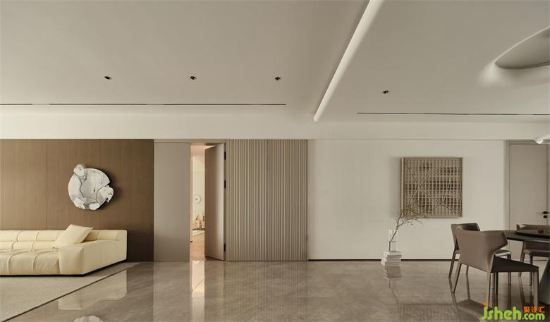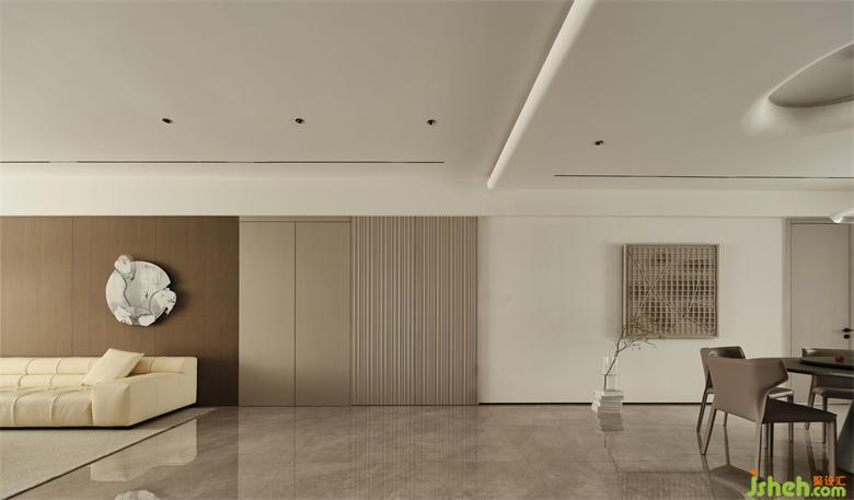 南京藏龍御景家裝設計開放的空間布局,簡約克制的美學,顯現空間的寧靜與包容性。