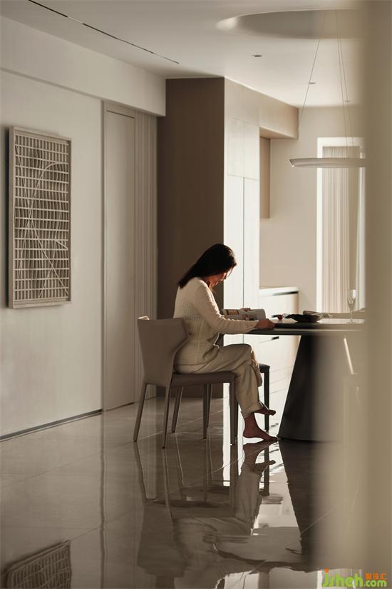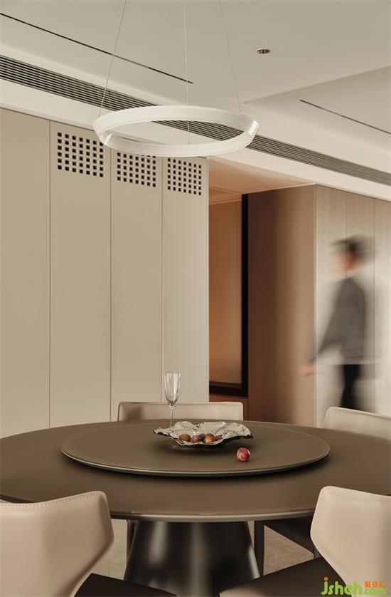 圓形的餐桌讓用餐更有氛圍,無(wú)形中拉近了家人之間的距離;南京藏龍御景家裝設(shè)計(jì)頂面圓形造型的加入,表現(xiàn)出空間獨(dú)特的藝術(shù)美感,下掛圓形吊燈,又與圓桌形成呼應(yīng),在流暢線條的回旋間營(yíng)造出一種摩登時(shí)尚的氛圍。