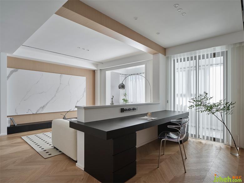 開放式書房的設(shè)計(jì),與客餐廳形成環(huán)游動(dòng)線,各空間交流無障礙,南京瓏玥名邸精裝房改造賦予空間通透感。書房與陽臺之間搭配了夢幻簾,輕柔飄逸的薄紗材質(zhì),柔和過濾強(qiáng)烈的太陽光,兼具美觀雅致和確保私密于一身,營造靜謐的工作學(xué)習(xí)氛圍。工作區(qū)背面沿墻體定制一排儲物柜,可以將一些小物品和雜物放在這里,保持空間的整齊劃一,原木色顯得自然溫潤,帶來一份溫馨舒適。