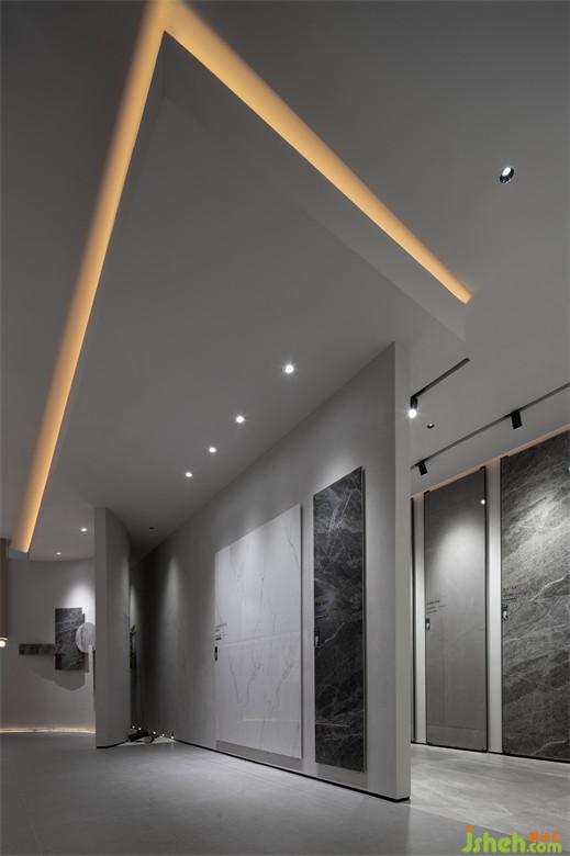 二層空間延續(xù)其他場(chǎng)域的布展形式,瓷磚展廳設(shè)計(jì)讓多元化產(chǎn)品以成系列的方式展示,空間的界限被打破,便于進(jìn)一步探索內(nèi)與外、人與物的關(guān)系。置入藝術(shù)裝置,為藝術(shù)和自然精神的相互滲透提供了切入點(diǎn)。