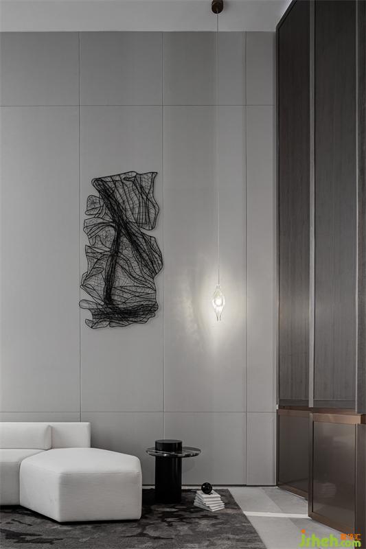 大面積的書架拔高空間,圍合的家具則凝聚著十足的雅趣。造型簡潔的藝術(shù)裝置呼應(yīng)了以“水”為主題的空間形態(tài),沙發(fā)組整齊有序,端莊素凈,一塵不染,自然采光與室內(nèi)燈光的結(jié)合,折射出空間的硬朗,氣質(zhì)是明朗的,簡約無飾,卻吸引著人們探索更多。