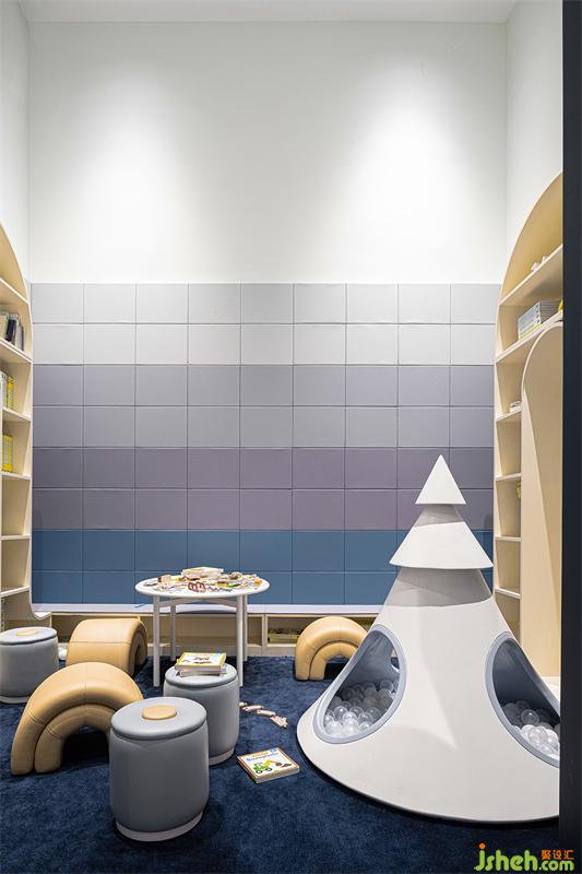通過對(duì)有趣的兒童空間主題和顏色的提取優(yōu)化,與空間形成配合,并利用游樂場的環(huán)境,增加空間的趣味。兒童區(qū)像糖果和冰鎮(zhèn)汽水一樣散發(fā)著快樂氣味,色彩夢幻聯(lián)動(dòng),打造孩童的“奇妙能力屋”。