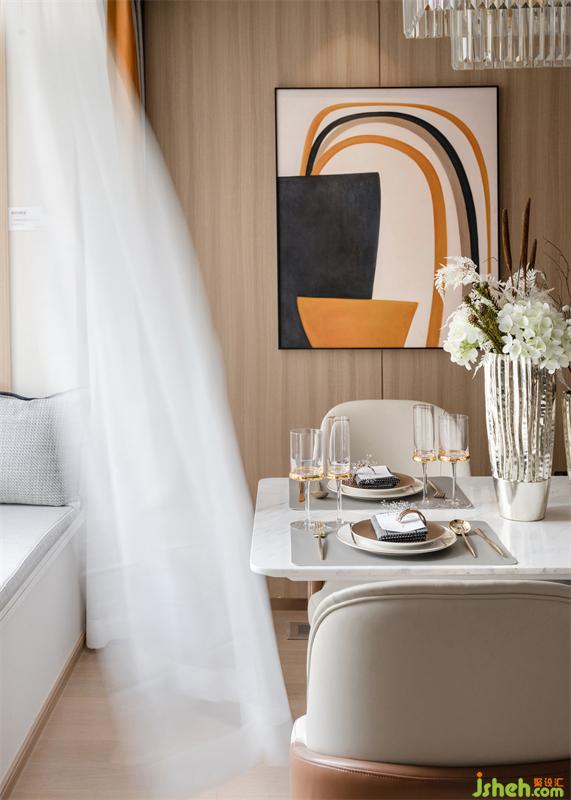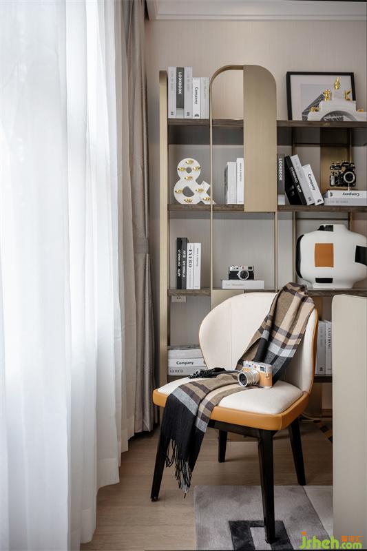 書房是男主人生活方式和精神意識的映射,書柜里放著主人收藏的相機與拍攝作品,時光在流逝,光將四季的變幻引入書房,裝點生活,創(chuàng)造平靜自然的氛圍,讓居者更好的專注當下,樣板房設計以安靜而有力的方式來進行創(chuàng)作,用相機來記錄生活的美好時刻。