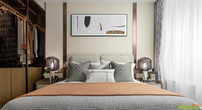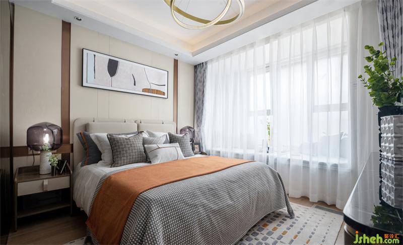 空間是有溫度和氣質(zhì)的,需要居者親自抵達,細細領會。主臥打造時尚優(yōu)雅的中性色調(diào),局部點綴橘色床品與擺件,一剛一柔,細節(jié)處混搭的撞色為空間注入活力,更顯層次感,讓光線參與設計,臥室在光環(huán)境的二次營造中悠然打開,整個空間都統(tǒng)一在柔和溫馨與自然當中。