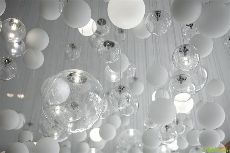 光通過格柵與水吧臺(tái)的綠植相交織,金屬裝飾錯(cuò)落有致,空間的剛?cè)嵬瑯?gòu)讓視野更加聚合于此,抬頭星光點(diǎn)點(diǎn),勾描著未來的科技感,直挺垂下的金屬吊燈,彼此平行有秩,衍生出序列的體驗(yàn)感,讓藝術(shù)的靈魂滲透進(jìn)有序的空間體量中。
