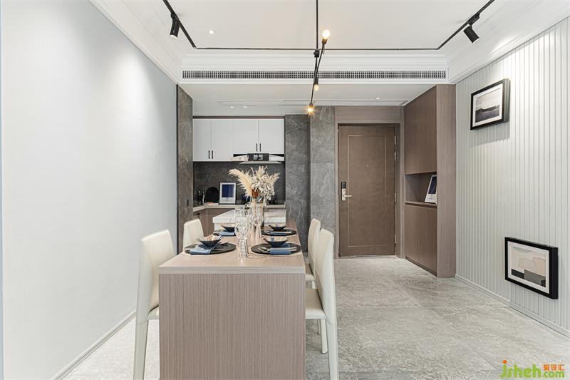 本次項目位于惠州城市中心區(qū)域,周邊配套成熟,結(jié)合當?shù)氐胤教厣覀冎匦聦徱暳丝臻g的層次感,最終選擇用簡單又不失細節(jié)的手法來塑造樣板間。