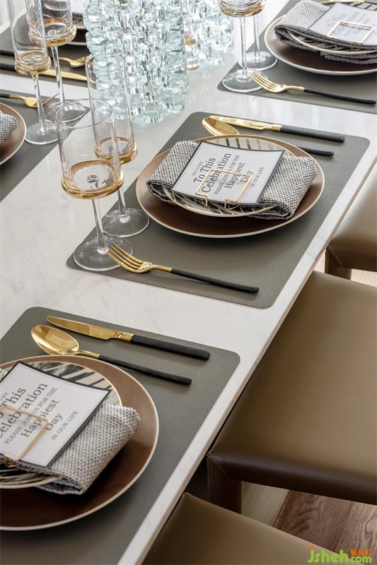 對于餐廳,我們從“城市森林”的概念里提取設(shè)計元素,將精致又特別的裝飾擺盤、酒杯,相互交錯,仿佛置身于熱帶雨林之中,而古希臘神話中的靈蛇圖形,也是歷史文化的經(jīng)典符號。